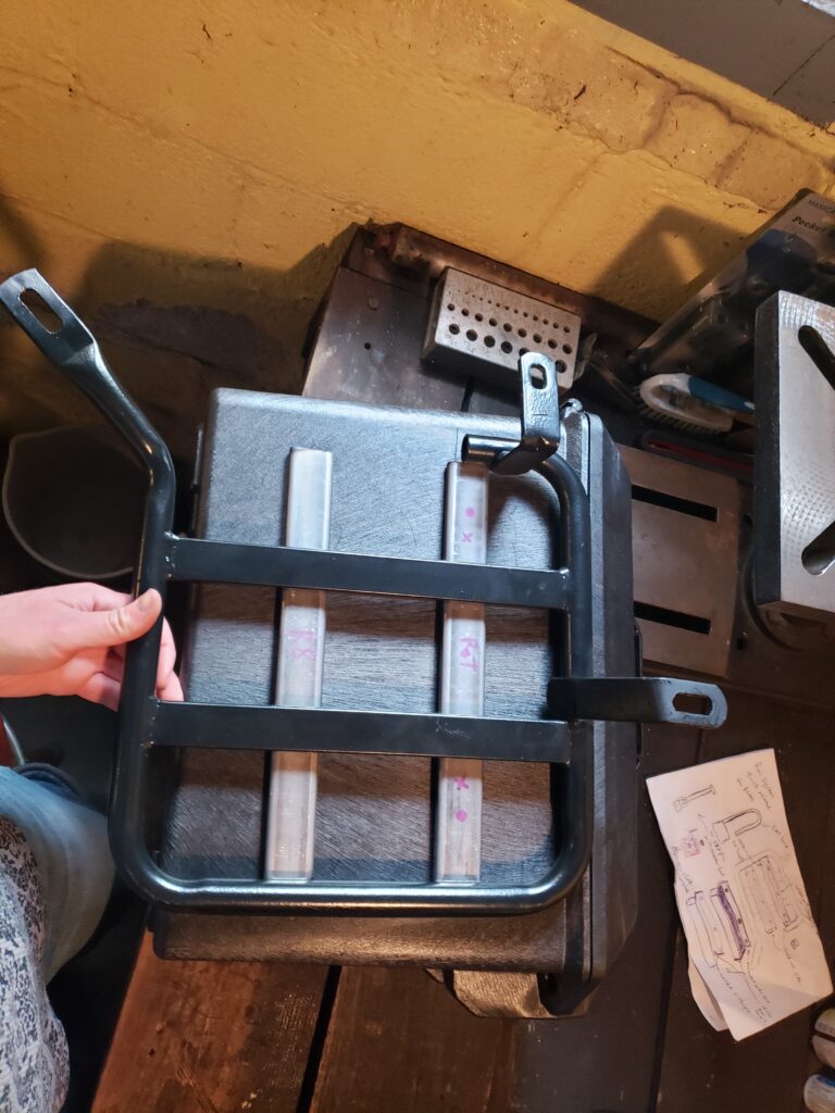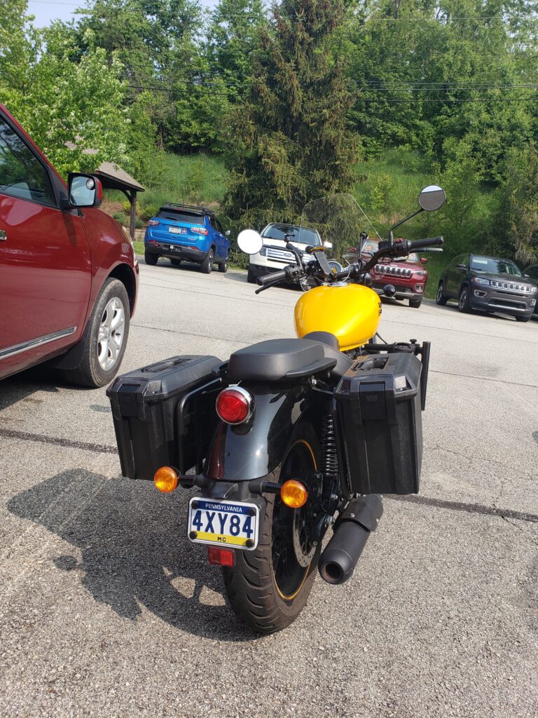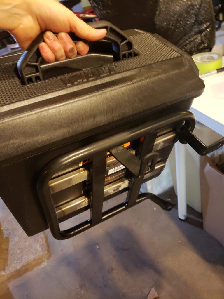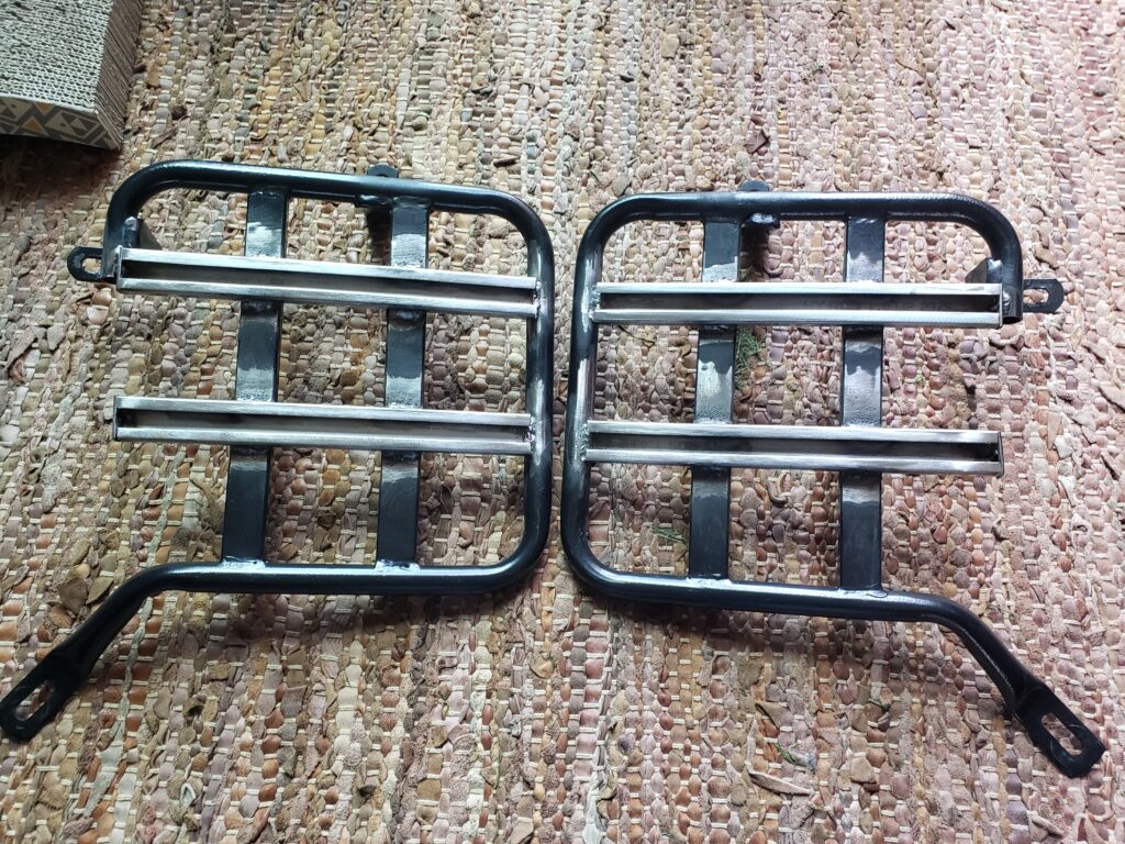 (2023) – With the help of a small 125 Titanium welder and metal cutting tools, I designed and created a custom rail system to install Pelican lock boxes onto my motorcycle. I wanted to create something practical, durable and yet visually appealing. The idea came from ready made “quick release” systems that can be bought for bigger motorcycle brands like Harley Davidson and Suzuki. Since no system exists for Royal Enfield bikes, I took it upon myself to make my own. The system consists of 4 rails, 2 on each side of the bike that are welded directly onto the luggage racks. Then I drilled 4 holes onto each of the boxes and bought elevator bolts, large washers and threaded handles to create custom hardware for attaching the boxes to the rails. The knobs are located inside the boxes and can be loosened to slide the elevator bolts out of the rails for easy removal of the boxes.