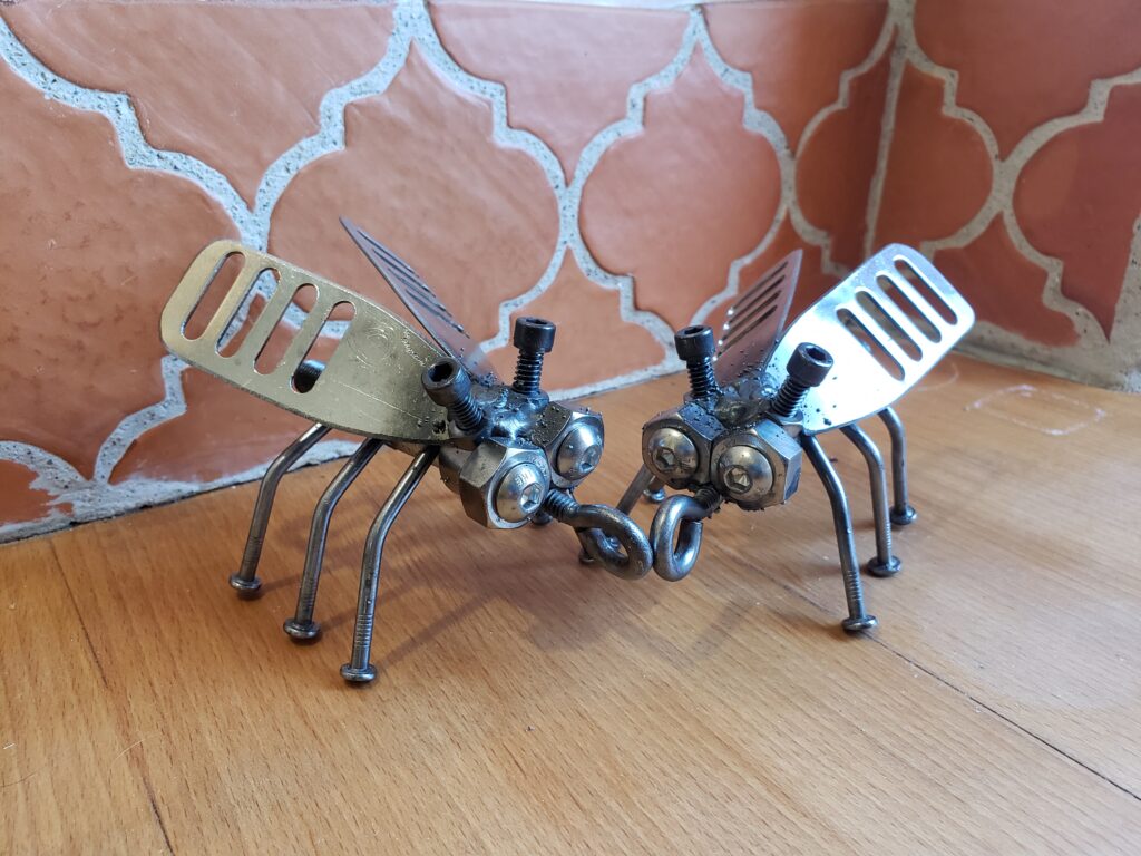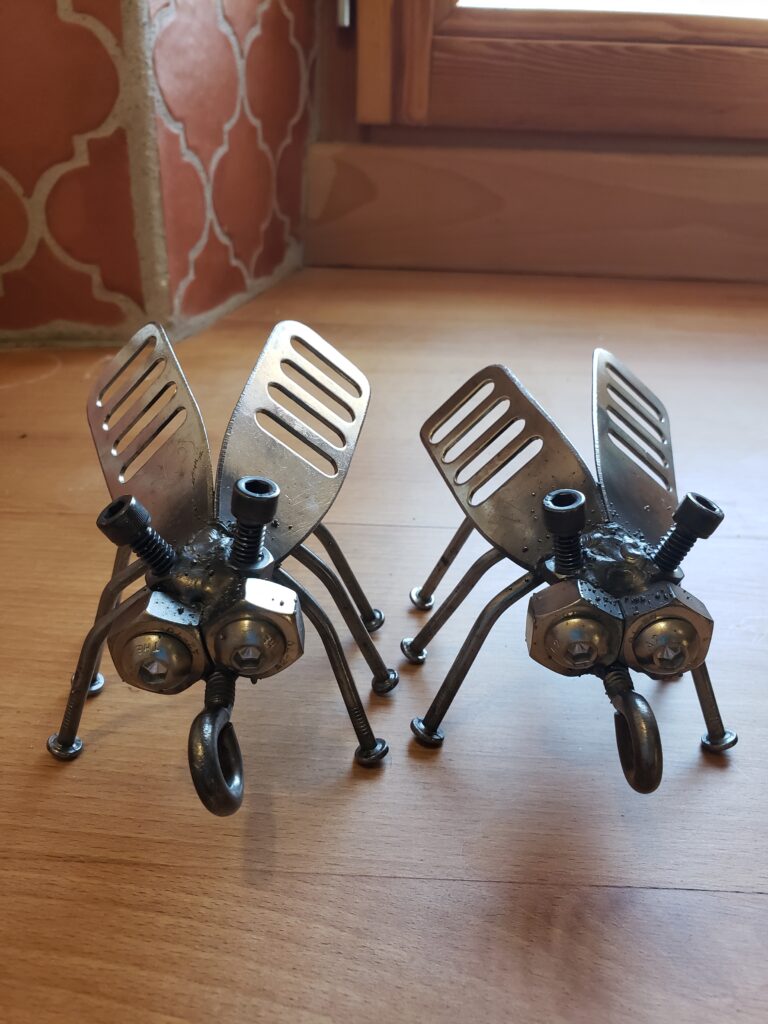 (2023) – These cute bugs were created with scrap metal using a 125 Titanium welder as a gift for my grandparents 60th anniversary.