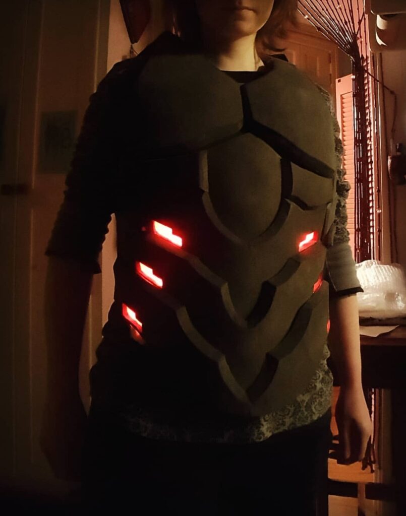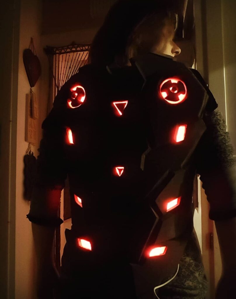 (2016 and on) – Throughout the years, I have created many different costumes and cosplays for events and conventions. For one of my most challenging projects, I taught myself to solder LEDs to create custom lighting. See pictures below.