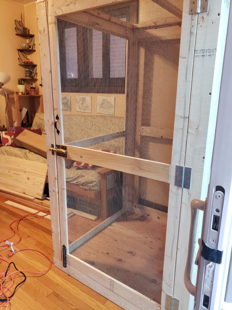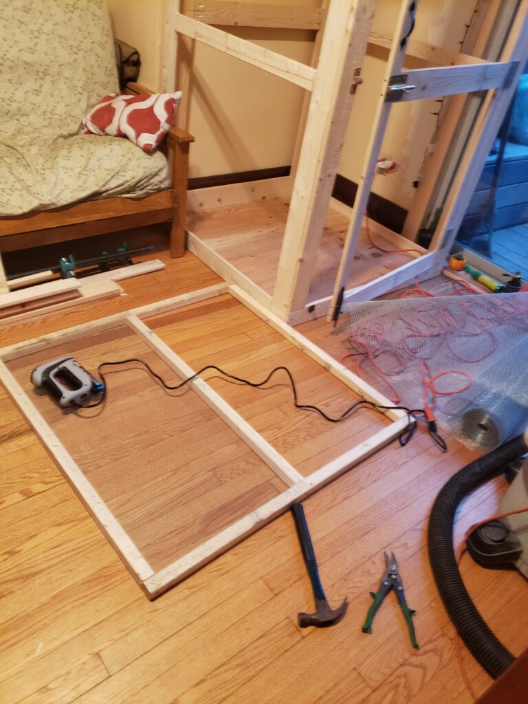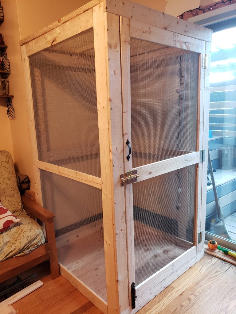 (2024) – Using Sketchup, I created a 3D model of an enclosure for my pet iguana using recycled and store-bought materials. The model is to scale with precise measurements of all the materials needed. I used google sheets to create a materials list in order to gauge how much of each material I would need to purchase. After measuring extensively to makeup for wood shrinkage, I cut all my material using a table saw and sliding miter saw. Hardware cloth was then stapled to the inside of the enclosure after it was assembled.