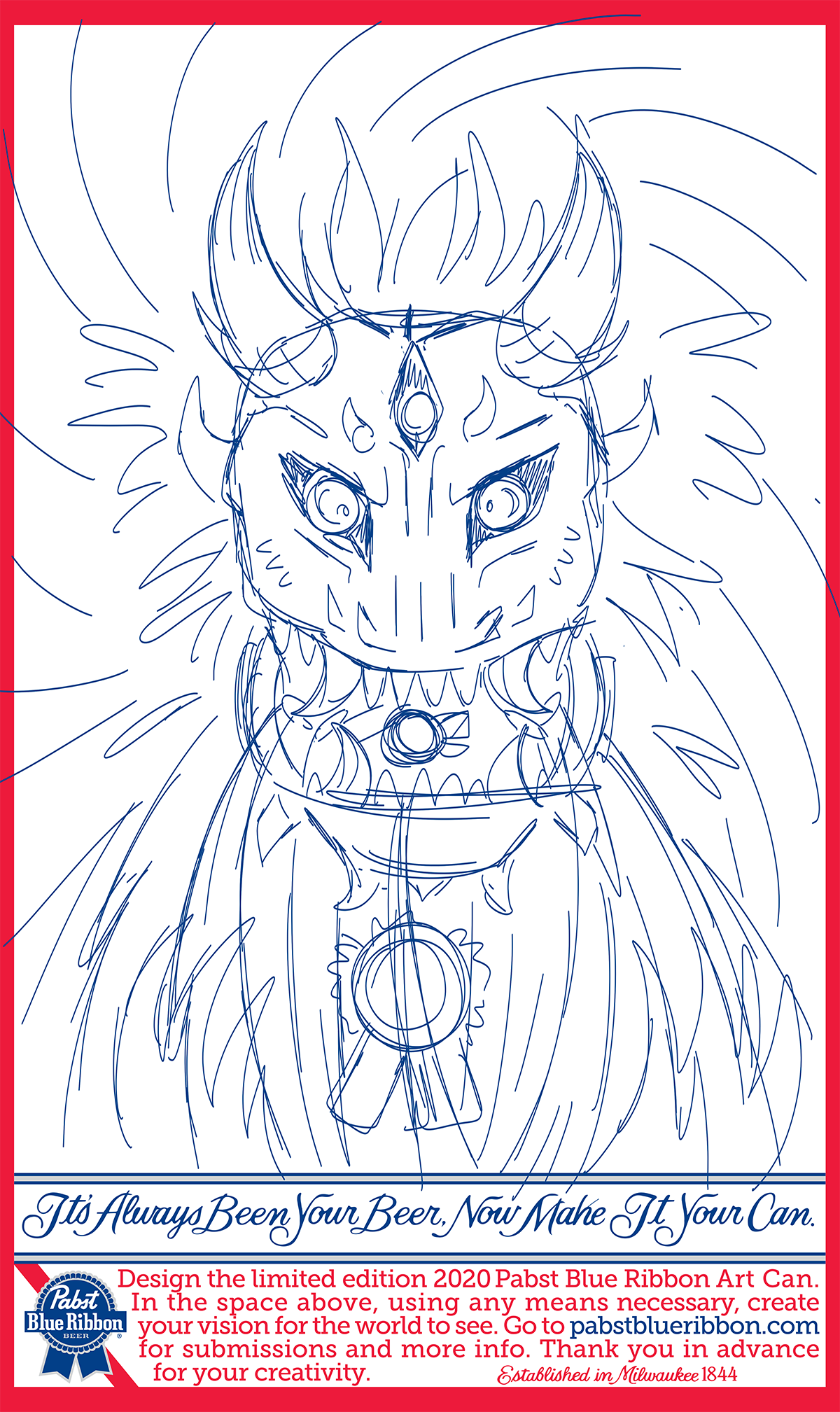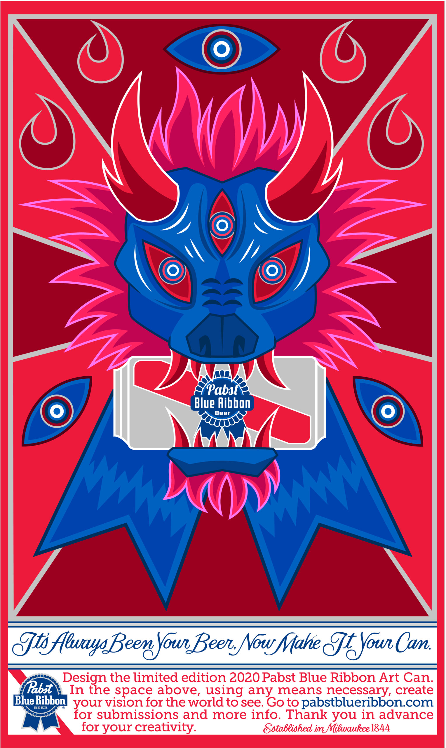 A label design created for a contest in 2020 hosted by “Pabst Blue Ribbon” beer. This was created using Adobe Illustrator and Adobe Photoshop.